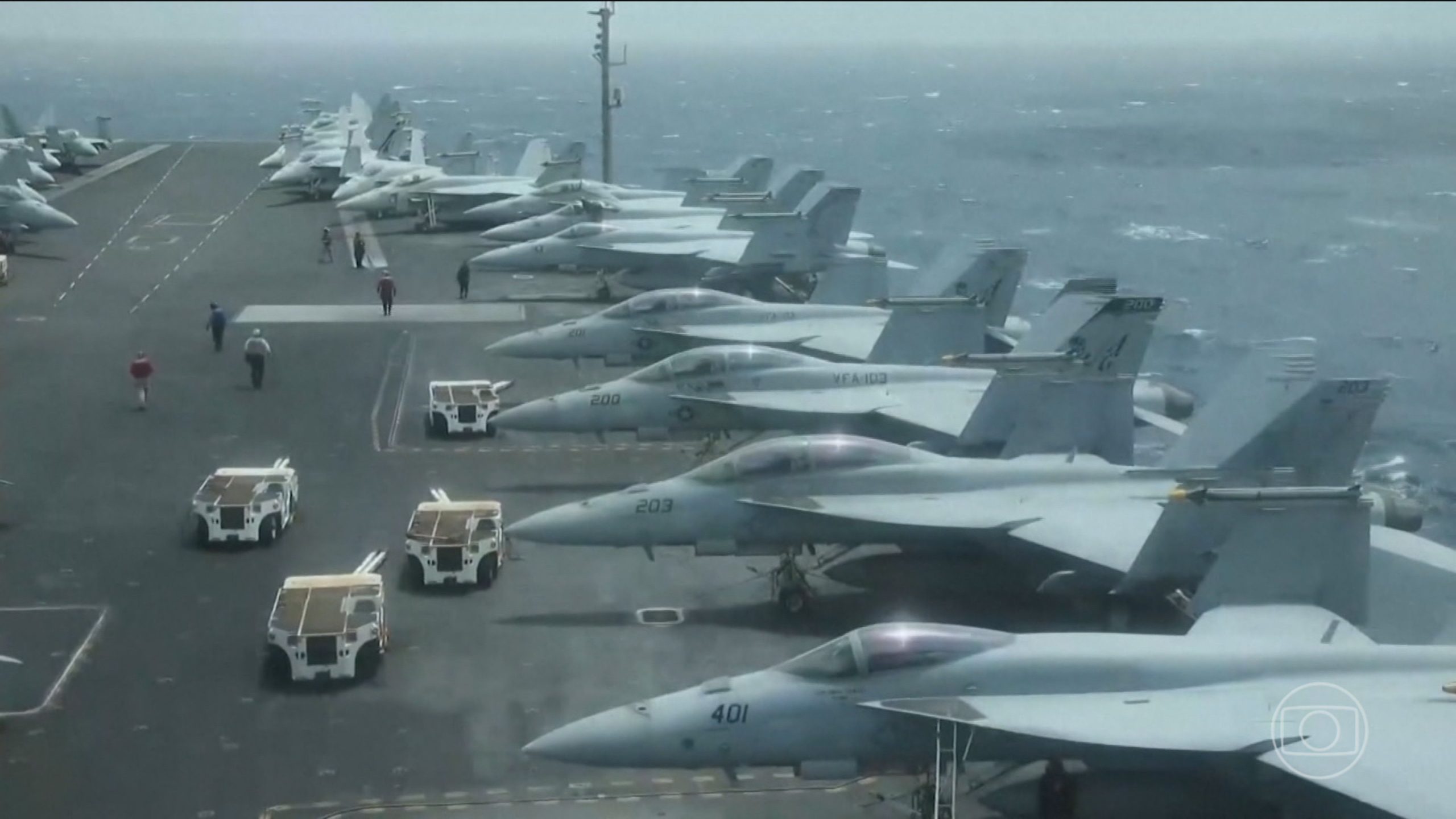 A região do Oriente Médio registra a maior concentração de aviões militares americanos desde 2003, ano da invasão do Iraque, conforme levantamento do 'Wall Street Journal'. A frota americana inclui o porta-aviões Abraham Lincoln, com capacidade para até 90 caças e acompanhado por três destróieres equipados com mísseis de longo alcance. No total, a Marinha dos EUA mantinha 13 navios na área. O maior porta-aviões do mundo, Gerald Ford, também foi avistado na entrada do Mar Mediterrâneo, após sua participação em operações no Caribe. Além disso, uma base aérea na Jordânia recebeu reforços de caças americanos no último mês.
