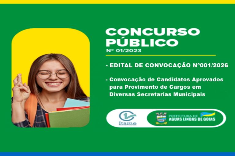 A Prefeitura de Águas Lindas de Goiás, por meio da Secretaria Municipal de Administração, convocou os candidatos aprovados no Concurso